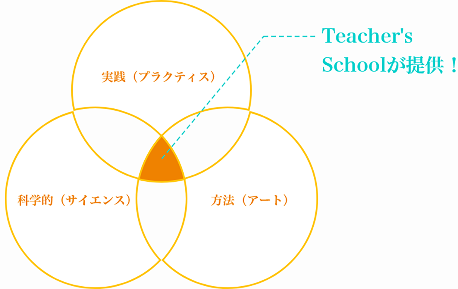 近年、「科学的(サイエンス)」という言葉が間違った形で独り歩きしている印象を受けます。「科学的」=「絶対的な正しさの保証」でないことを理解するのは、教育者にとって難しい話ではないでしょう。一方、科学に基づかない個人的な経験や勘だけを頼りにすることもまた空虚です。Teachers’ Schoolでは、教育学の分野で得られた研究結果(サイエンス)、実践で活用する方法(アート)の両方を重要視します。